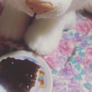 Naš tea party počeo je mojim omiljenim Loyd čajem od mente a završio sa jednostavnim i brzim kolačem od rogača koji djeca obožavaju, a kao što vidite i plišane igračke 😂.